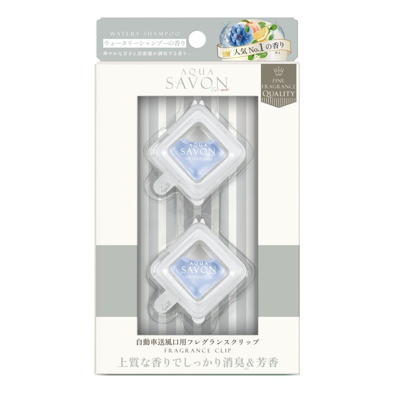風にのせて、心地よく香る。 アクア シャボン フォーミーのフレグランスクリップは、 エアコンの送風を利用して香りを広げるクリップタイプのカーフレグランスです。 エアコンルーバーに取り付けるだけで、 走行中も停車中も、車内に香りがやさしく広がります。 香りの強さは送風量によって調整でき、 その日の気分に合わせた使い方が可能です。 香水ブランドならではの上質な香りを、 さりげなく、そしてスマートに楽しめるアイテムです。