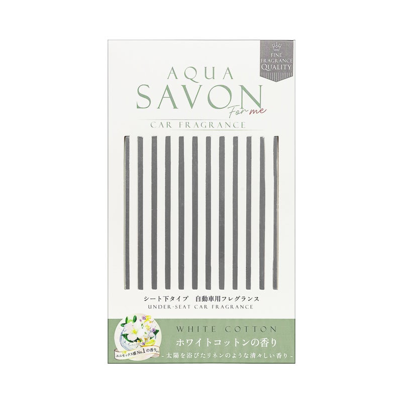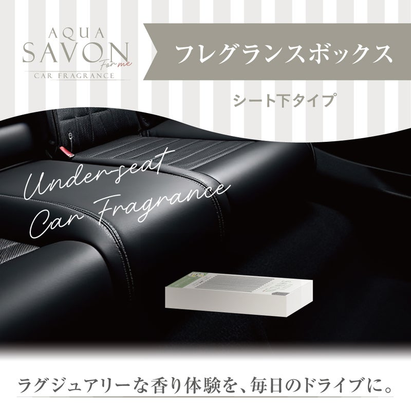 車内を、心地よい清潔感で満たす。 アクア シャボン フォーミーのフレグランスボックスは、 置くだけでしっかりと香りを楽しめるボックスタイプのカーフレグランスです。 シート下など目立たない場所に設置でき、 空間全体に香りが広がる設計。 毎日の運転時間を、自分らしく整ったひとときへと導きます。 香水ブランドならではの上質な香りを、 車内で気軽に楽しめるアイテムです。
