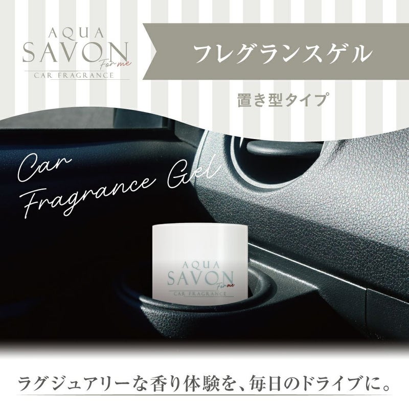 車内に、清潔感のある香りをしっかりと。 アクア シャボン フォーミーのフレグランスゲルは、 置くだけで香りを楽しめるゲルタイプのカーフレグランスです。 ドリンクホルダーやダッシュボードまわりなど、 目に入りやすい場所にも置きやすいコンパクト設計。 香りが広がりやすく、車内全体を心地よく包み込みます。 香水ブランドならではの上質な香りを、 日常のドライブシーンで気軽に楽しめるアイテムです。
