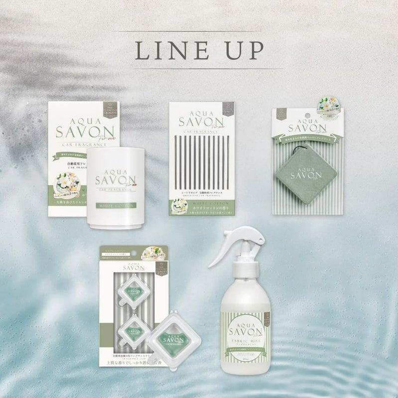香水生まれの本格派カーフレグランスシリーズ ユニセックス感No.1の香り※ 太陽を浴びたリネンのような 清々しい香り ~香調~ トップノート:リーフグリーン、レモン、ライム ミドルノート:オレンジフラワー、ジャスミン、ライラック ラストノート:アンバー、バルサミック ※アクア シャボンシリーズ内