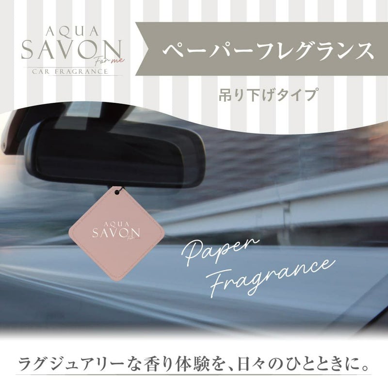空間に、清潔感のある心地よさを。 アクア シャボン フォーミーのペーパーフレグランスは、 さりげなく香りを楽しめる吊り下げタイプのフレグランスです。 クローゼットや玄関、車内など、 身の回りの空間にそっとなじむ、やさしい香り立ち。 強く主張しすぎず、ふとした瞬間に感じる心地よさが、 日常の気分を整えてくれます。 香水ブランドならではの上質な香りを、 場所を選ばず、もっと気軽に楽しめるアイテムです。