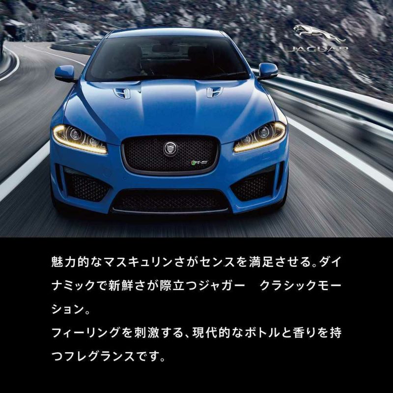 魅力的で現代的なマスキュリンさがセンスを満足させる。ダイナミックで新鮮さが際立つ「ジャガークラシックモーション」。フィーリングを刺激する、現代的なボトルと香りを持つフレグランス。爽やかなトップから、スパイシーなミドルへと変化。ベースに使われている多様な香りが魅力的で、現代的、そしてエレガンスさを演出します。