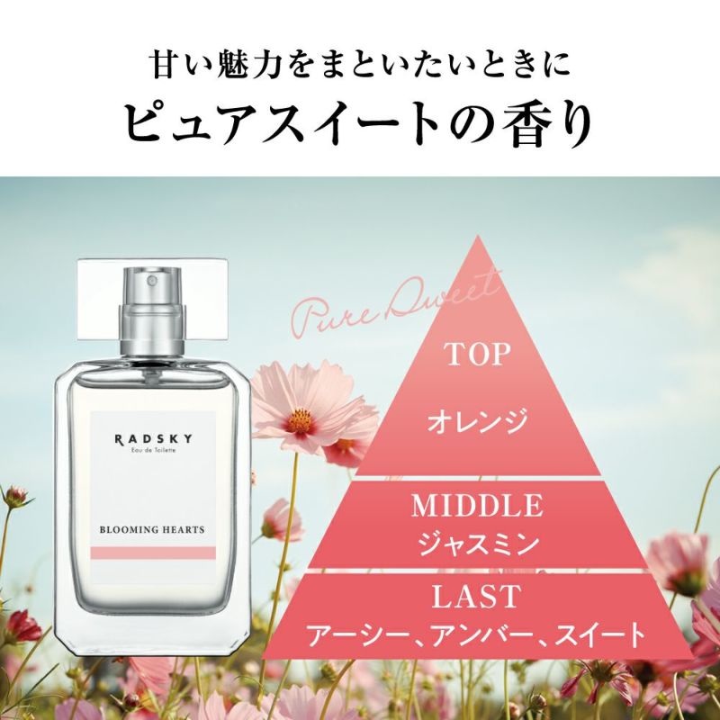 そよ風に揺られ花ひらく心地よい空をイメージ。 優しいフローラルを ナチュラルな甘さで包み込んだ ピュアスイートの香り