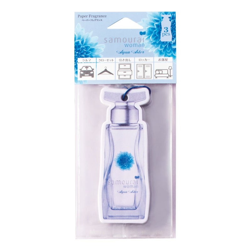 吊るすだけ簡単いい香り。車内以外にも使えるペーパータイプのフレグランス!! 香水のデザインで他にはない特別感を演出します。 サムライウーマンのフレグランスボトルをシンプルにプリント。 絶妙なサイズ感で、インテリアとしても楽しめます。