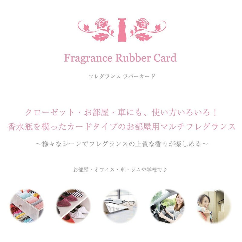 クローゼット・お部屋・車にも、使い方いろいろ! カードタイプのお部屋用マルチフレグランスが新登場 ~様々なシーンでフレグランスの上質な香りが楽しめる~ 香水瓶を模ったカードタイプのマルチフレグランス