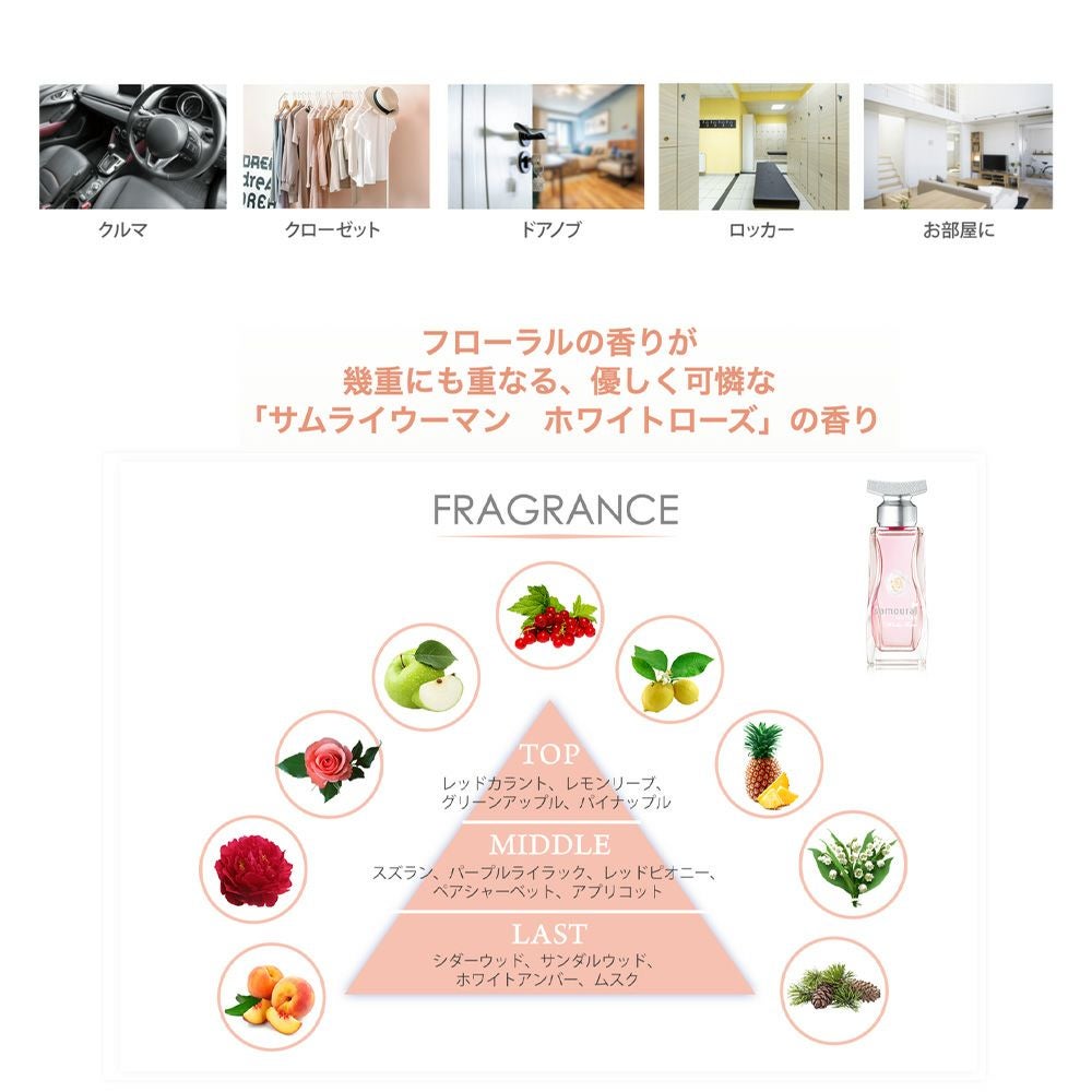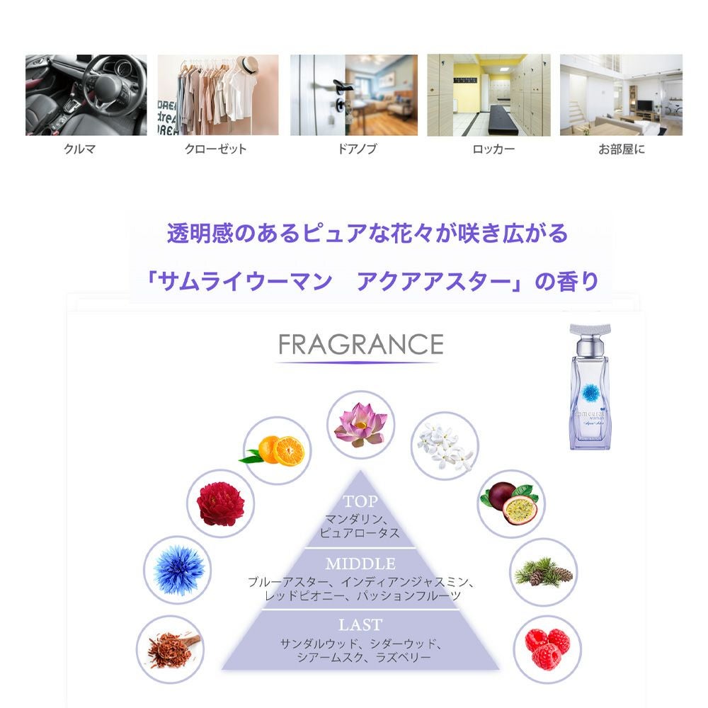 「サムライウーマン」はメンズフレグランス「サムライ」のレディース用として、新しい感覚の香りとボトルデザインで誕生しました。​