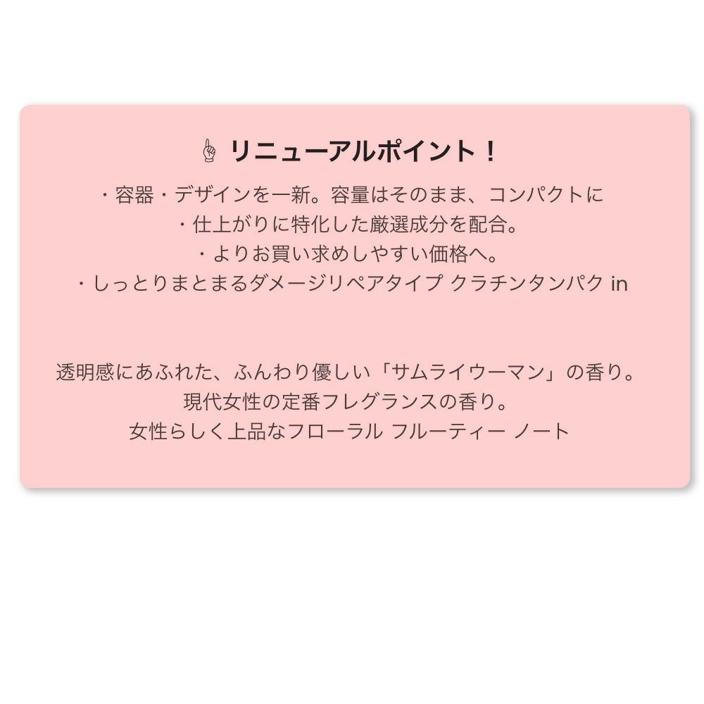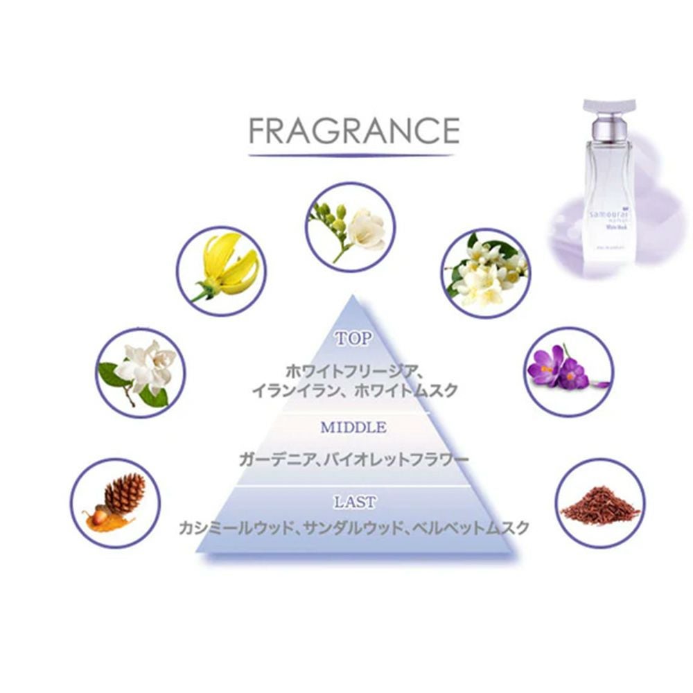 「サムライウーマン」はメンズフレグランス「サムライ」のレディース用として、新しい感覚の香りとボトルデザインで誕生しました。