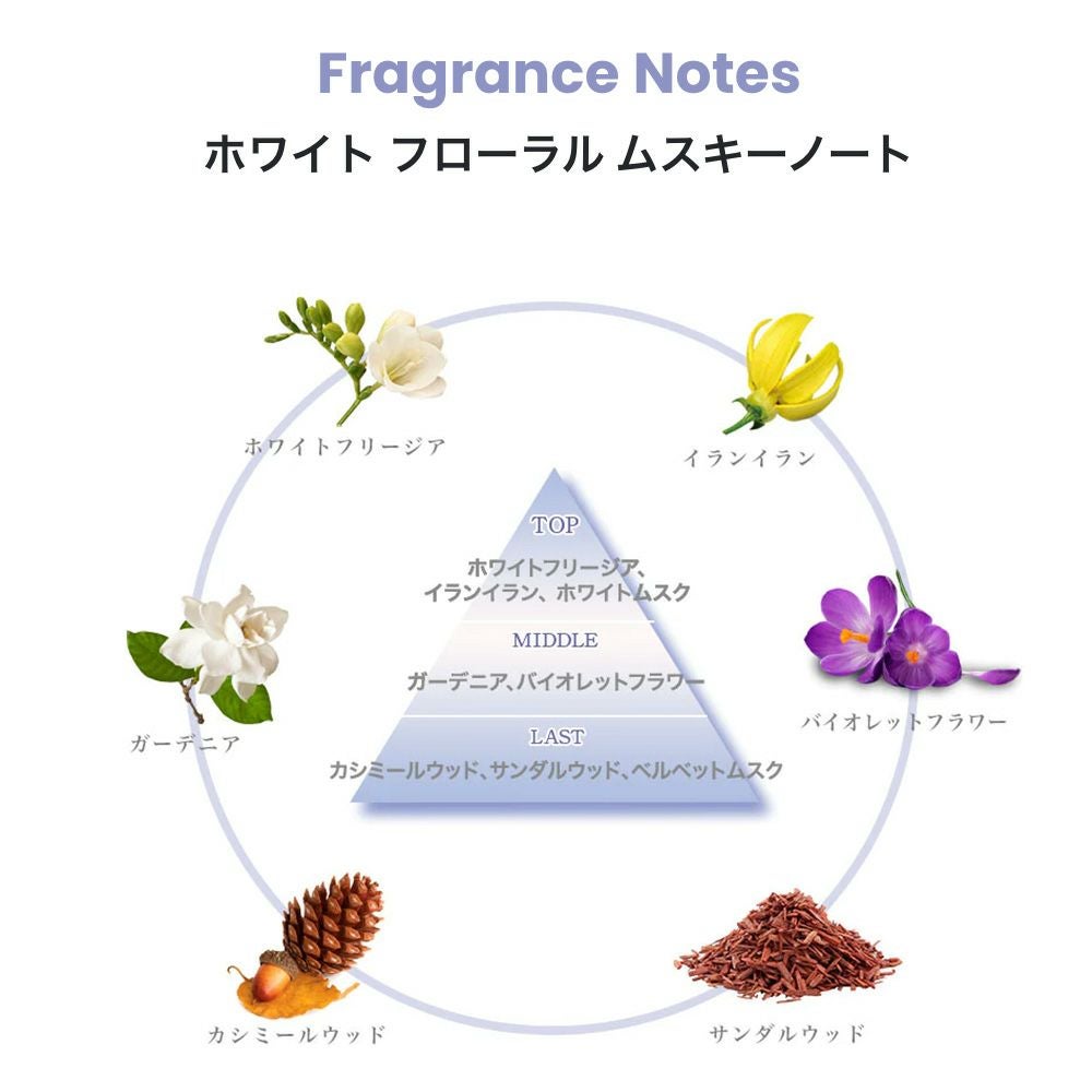 日本女性の魅力に着目して、誠実、純粋、愛といった大切なものを見失わずに、控えめでありながらも大切な人を一途に思う強さをもつ”大和撫子”のような女性をイメージして作られている香りです。