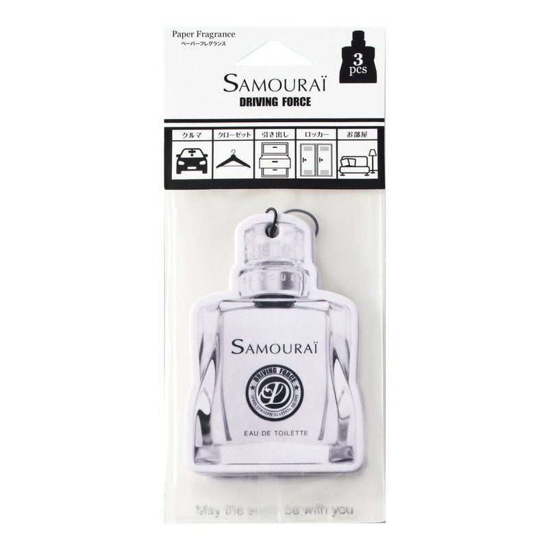 吊るすだけ簡単いい香り。車内以外にも使えるペーパータイプのフレグランス!! 香水のデザインで他にはない特別感を演出します。 サムライのフレグランスボトルをシンプルにプリント。 絶妙なサイズ感で、インテリアとしても楽しめます。
