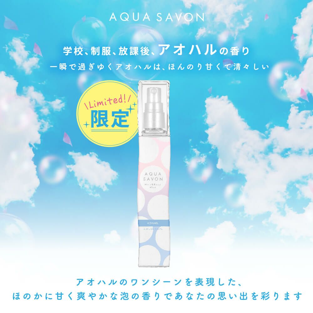 他の画像を見る 心やすらぐ、シャボンな毎日。AQUA SAVON(アクアシャボン) アクア シャボン ヘアー&ボディミスト 学校、制服、放課後、アオハルの香り 135mL 価格 ¥ 1,540 税込 在庫切れ お気に入りに登録する
