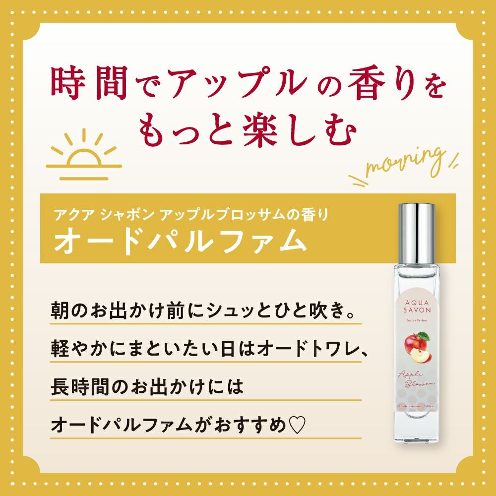 他の画像を見る 心やすらぐ、シャボンな毎日。AQUA SAVON(アクアシャボン) アクア シャボン オードパルファム アップルブロッサムの香り 16mL 価格 ¥ 1,650 税込 お気に入りに登録する