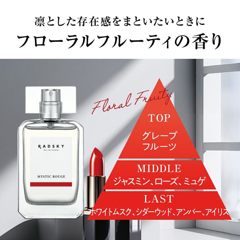窓から差し込む光が映すミステリアスな空をイメージ。 魅惑的なルージュのような フローラルの甘さが惹きつける フローラルフルーティの香り