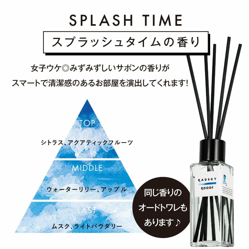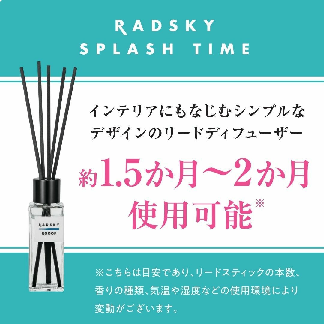 他の画像を見る 清潔感のある男は最高!スプラッシュタイムの香り ラッドスカイ ルーフ リードディフューザー スプラッシュタイムの香り 90mL 価格 ¥ 2,750 税込 在庫切れ お気に入りに登録する