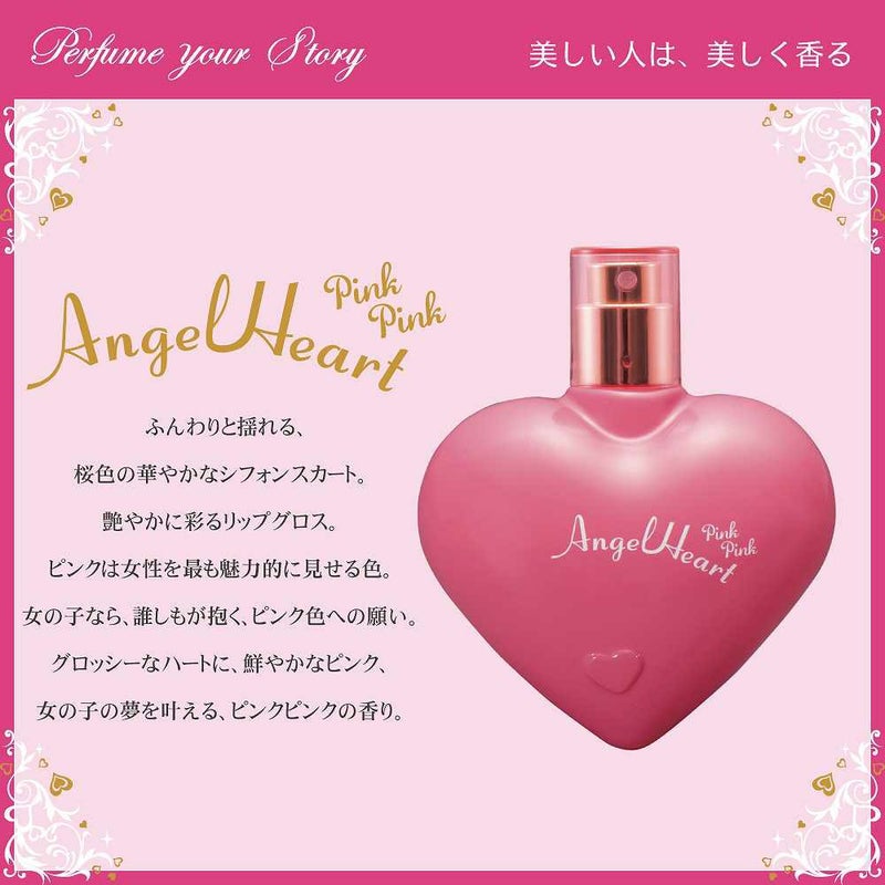 Bottle Design 長く愛され続けているエンジェルハートのハートデザインボトル。 Color ポップでマットなピンク色。ひと吹きすれば危険なPinkの魔法にかかってしまいそうな、かわいらしくも危ういドキドキ感を反映。 Package Design 手に取れば物語が始まりそうなホワイトのパッケージには禁断の果実の蔦をイメージしたモチーフに、キラキラと乙女心をくすぐる様々なチャームをあしらいました。