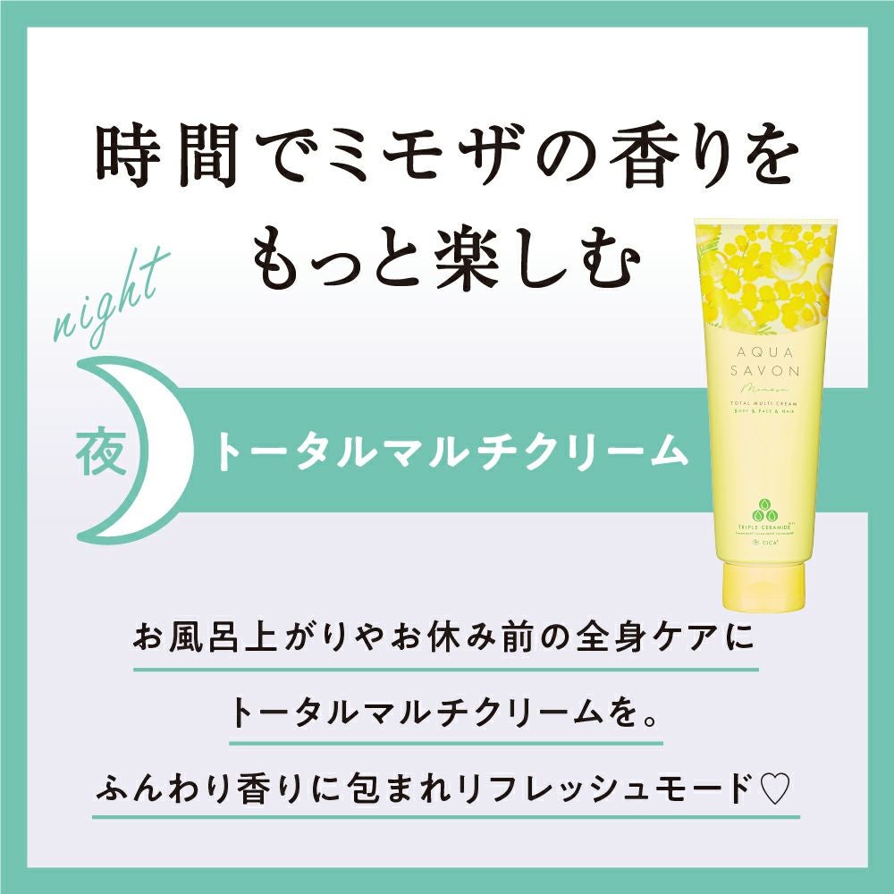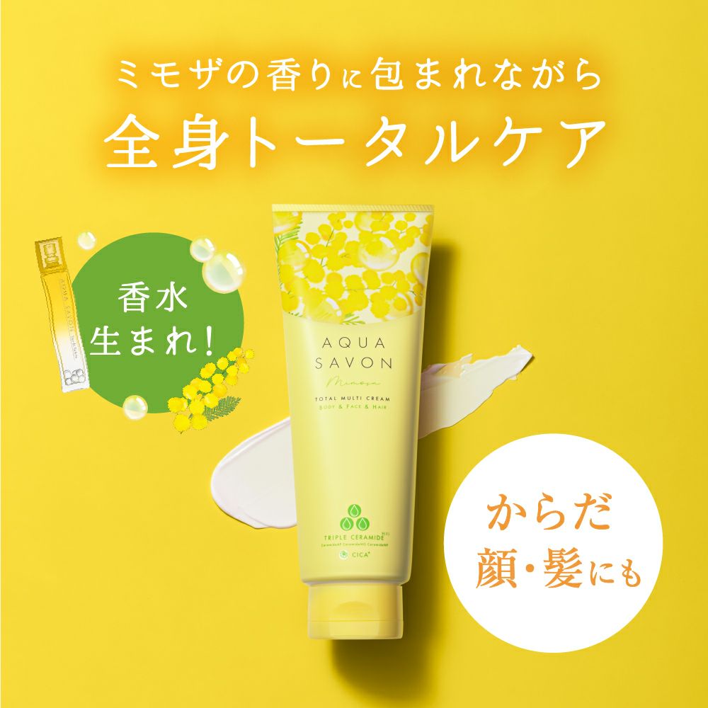 他の画像を見る 心やすらぐ、シャボンな毎日。AQUA SAVON(アクアシャボン) アクア シャボン トータルマルチクリーム (24s) ミモザの香り 230g 価格 ¥ 1,540 税込 お気に入りに登録する