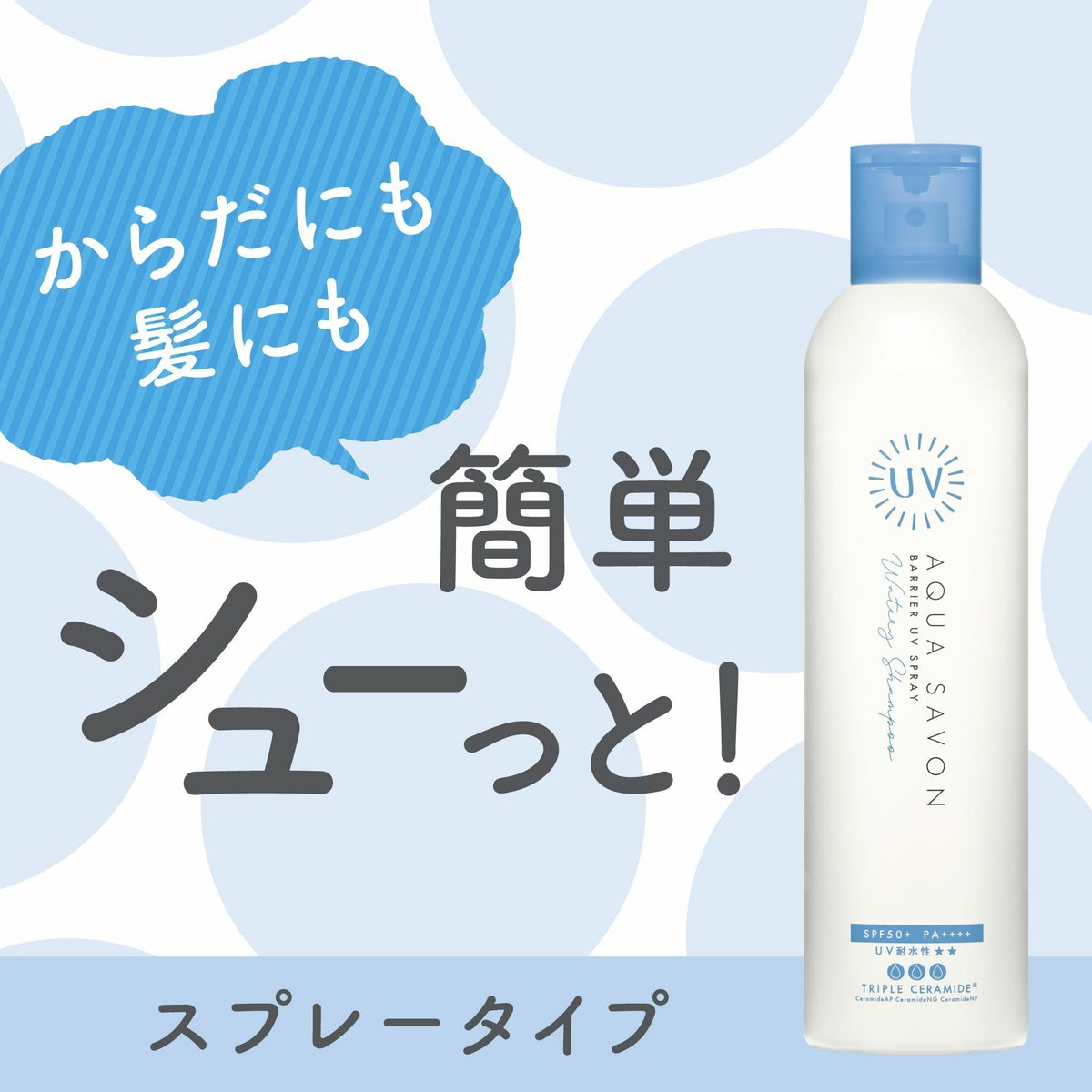 他の画像を見る 心やすらぐ、シャボンな毎日。AQUA SAVON(アクアシャボン) アクア シャボン バリアUVスプレー ウォータリーシャンプーの香り(24S) 220g 価格 ¥ 1,870 税込 お気に入りに登録する