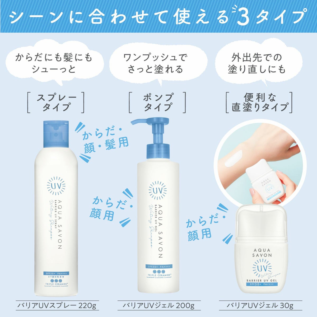 他の画像を見る 心やすらぐ、シャボンな毎日。AQUA SAVON(アクアシャボン) アクア シャボン バリアUVジェル ウォータリーシャンプーの香り(シナモロール 24S)200g 価格 ¥ 1,980 税込 お気に入りに登録する
