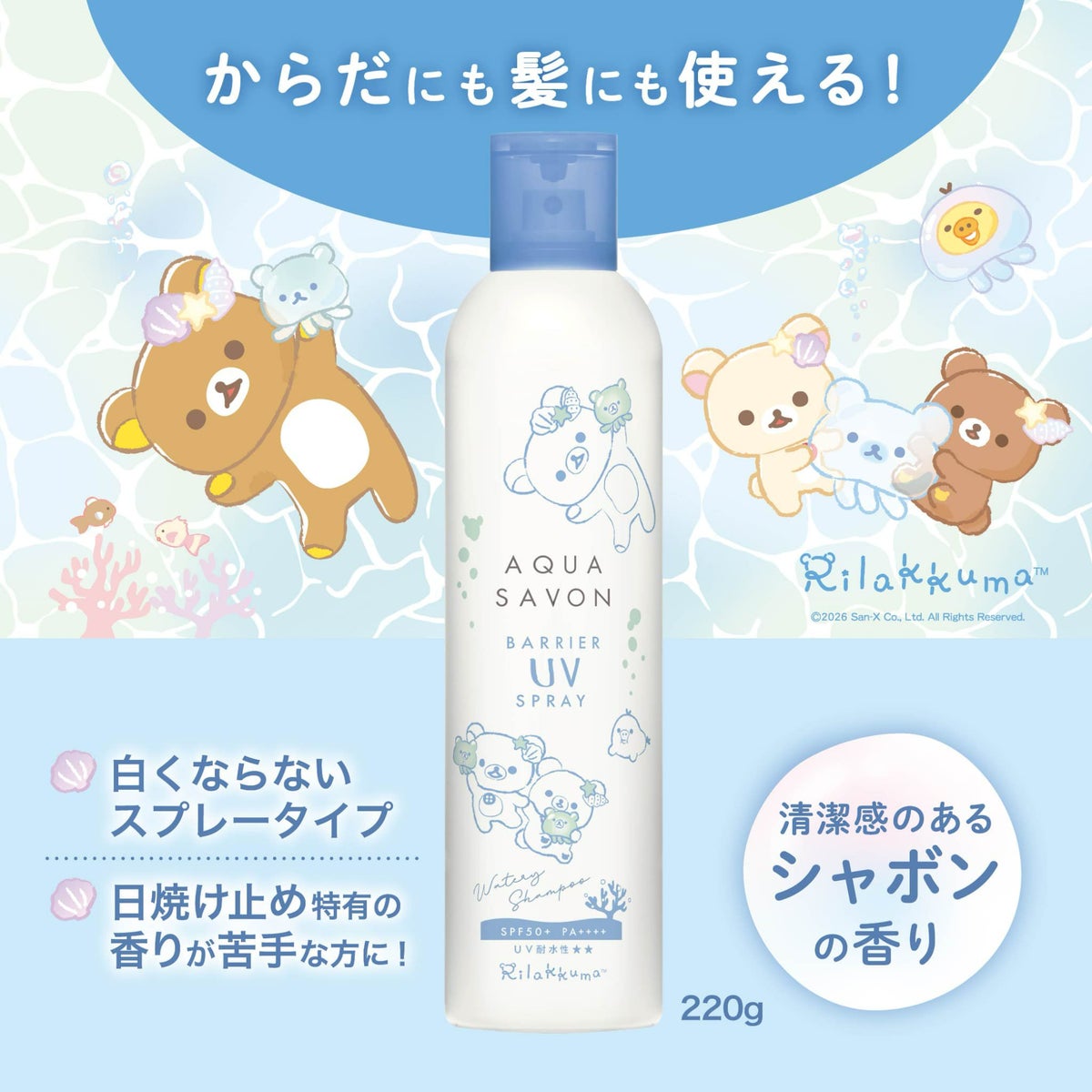 他の画像を見る 心やすらぐ、シャボンな毎日。AQUA SAVON(アクアシャボン) アクア シャボン バリアUVスプレー ウォータリーシャンプーの香り(リラックマ26S) 220g 価格 ¥ 1,980 税込 販売期間 2026/02/05 0:00 〜 お気に入りに登録する