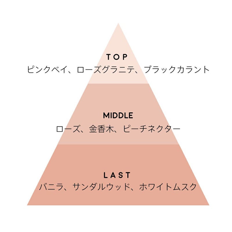 ピンクベイとローズグラニテを組み合わせたロマンティックなノート、ウッディなムスクベースの妖艶な甘さが嗅覚を刺激する官能的なフレグランスです。