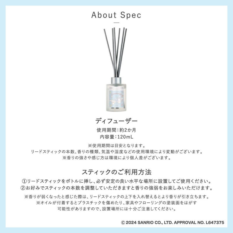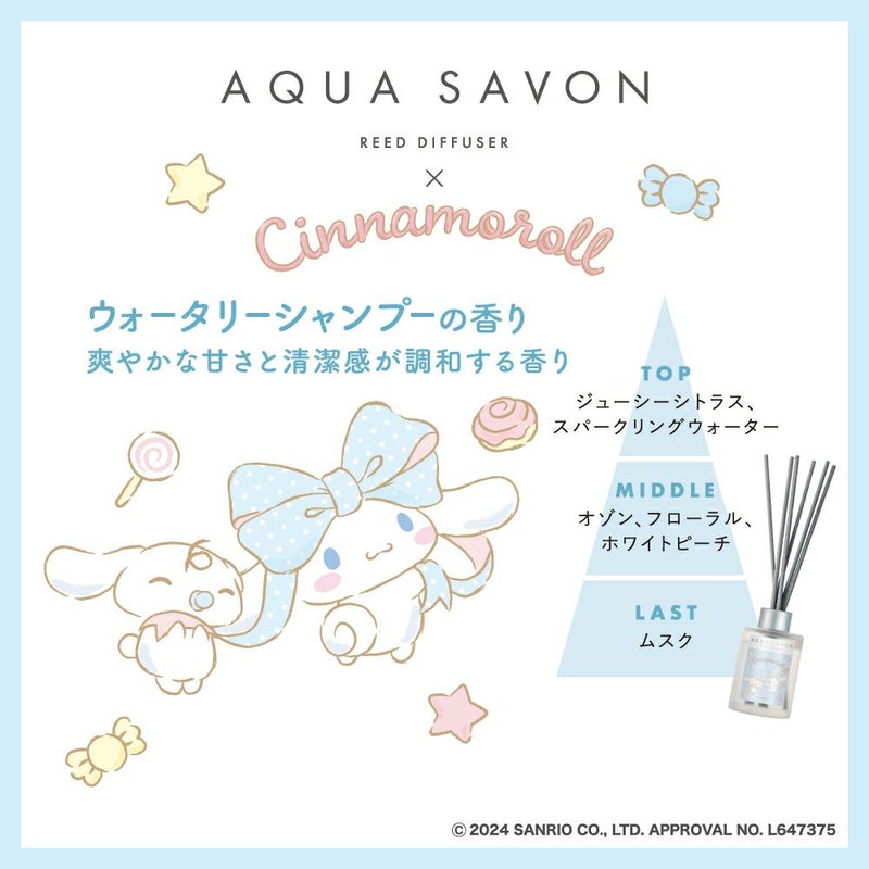 アクア シャボン リードディフューザー ウォータリーシャンプーの香り(シナモロール 24A) 120mL