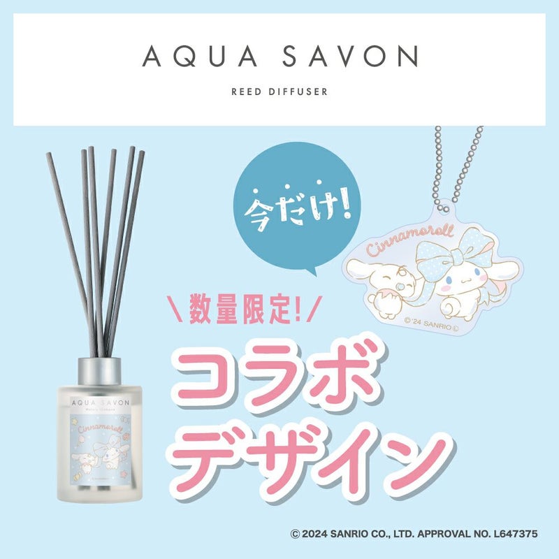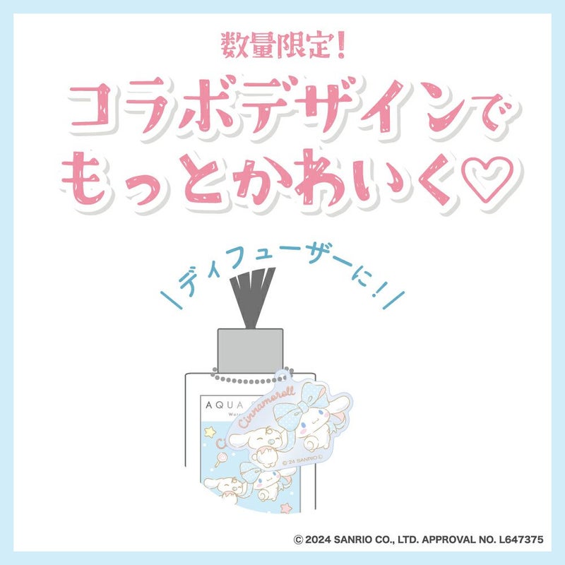アクア シャボンのリードディフューザーから、サンリオキャラクターコラボデザインのボトルが新登場!