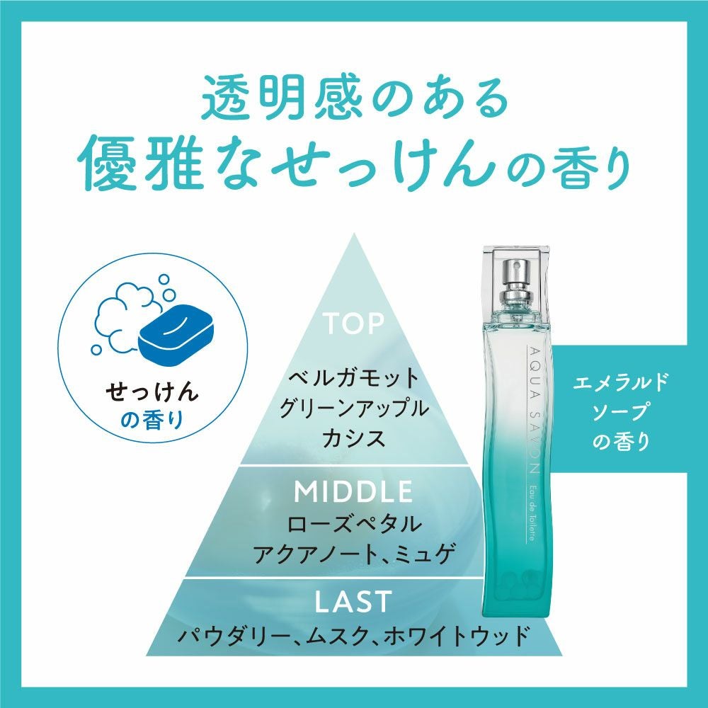 他の画像を見る 心やすらぐ、シャボンな毎日。AQUA SAVON(アクアシャボン) アクア シャボン ジューシーシャボンの香り オードトワレ 80mL 価格 ¥ 2,750 税込 在庫切れ お気に入りに登録する