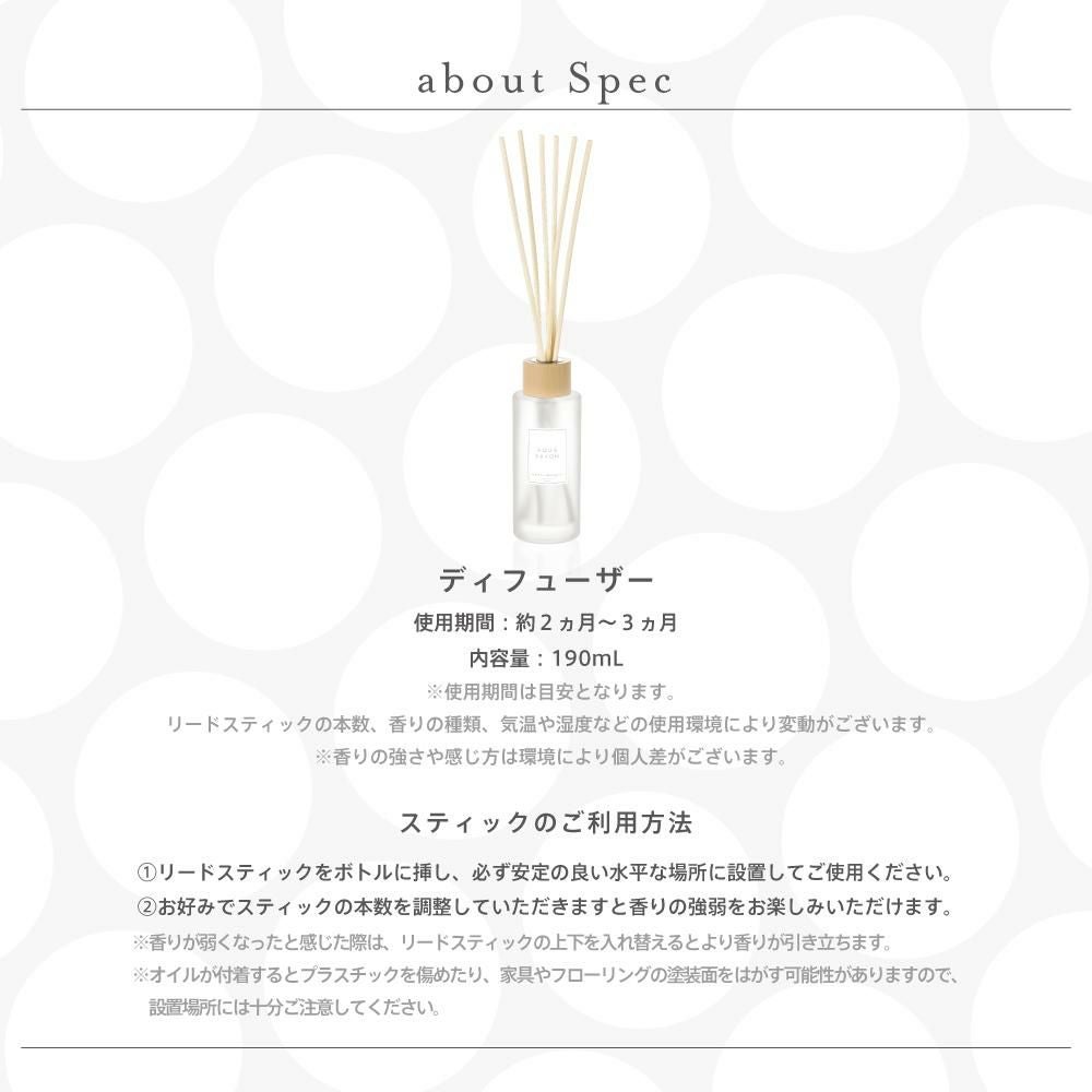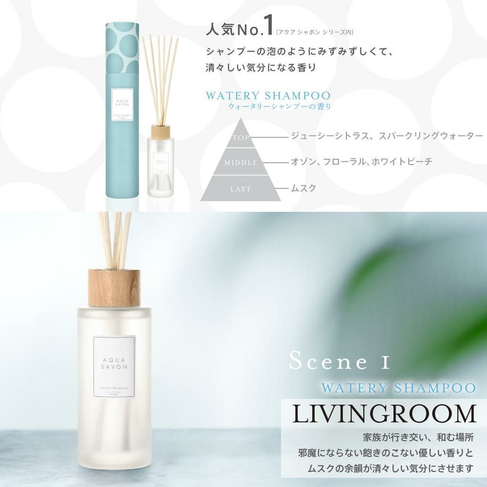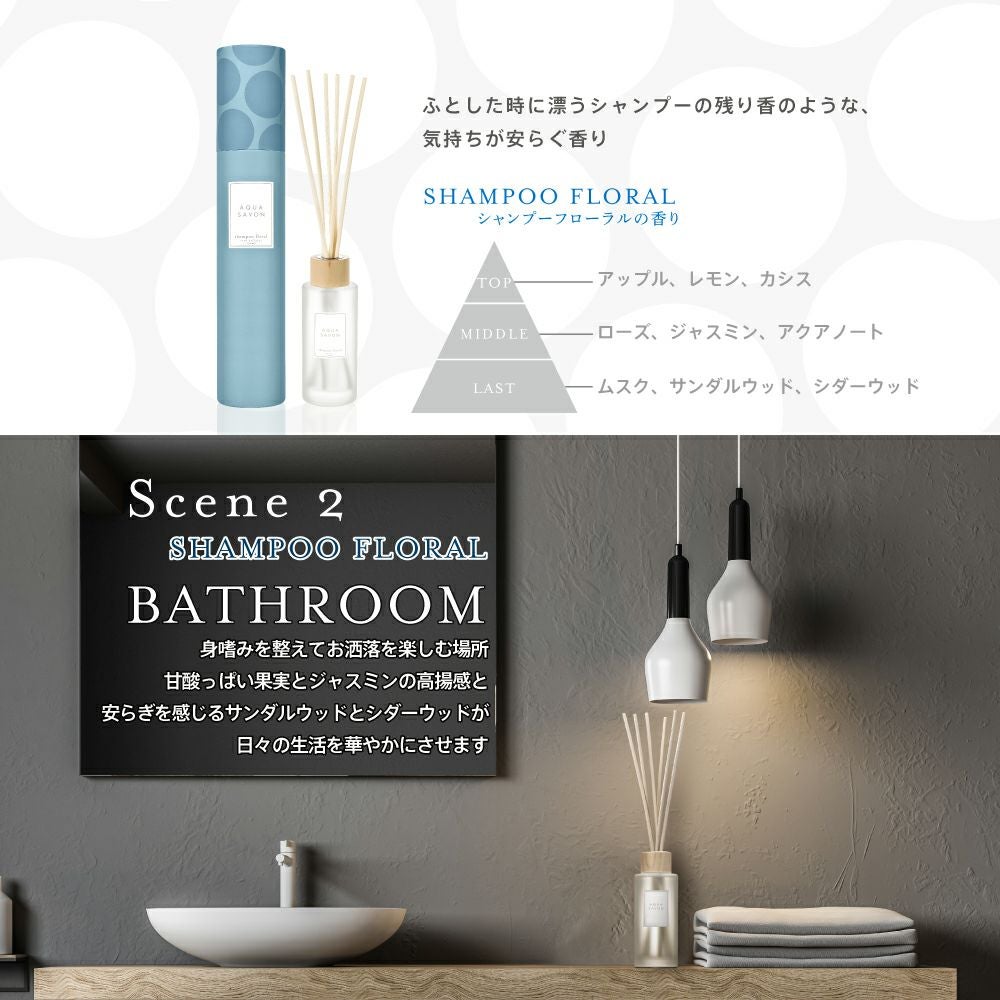 他の画像を見る 心やすらぐ、シャボンな毎日。AQUA SAVON アクア シャボン リードディフューザー シャンプーフローラルの香り 190mL 価格 ¥ 3,300 税込 在庫切れ お気に入りに登録する