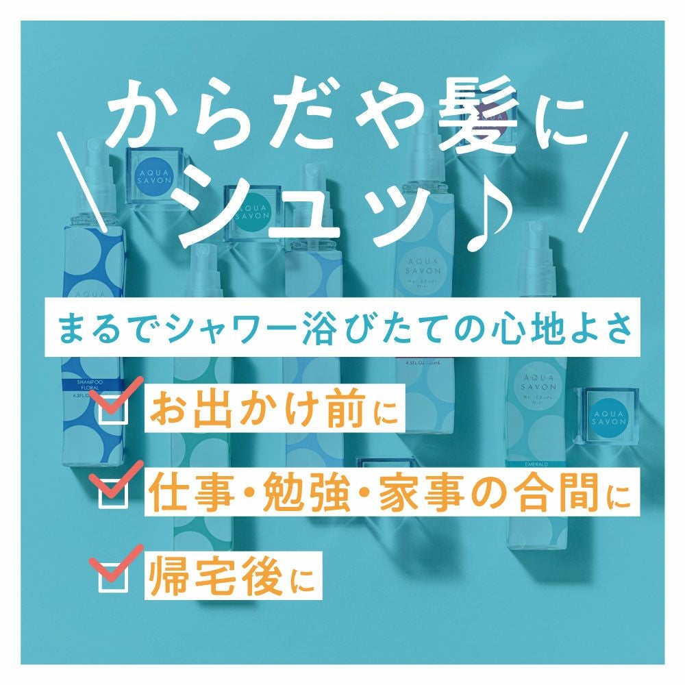 他の画像を見る 心やすらぐ、シャボンな毎日。AQUA SAVON(アクアシャボン) アクア シャボン ヘアー&ボディミスト シャンプーフローラルの香り 19s 135mL 価格 ¥ 1,540 税込 お気に入りに登録する