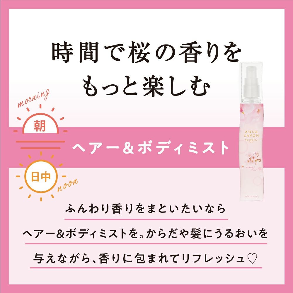 他の画像を見る 心やすらぐ、シャボンな毎日。AQUA SAVON(アクアシャボン) アクア シャボン ヘアー&ボディミスト サクラフローラルの香り 135mL 価格 ¥ 1,540 税込 お気に入りに登録する