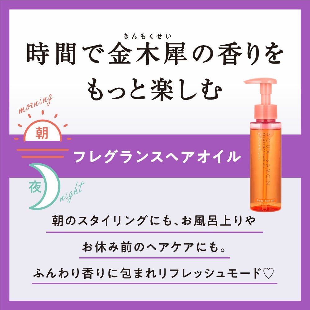 他の画像を見る 心やすらぐ、シャボンな毎日。AQUA SAVON(アクアシャボン) アクア シャボン フレグランスヘアオイル (23A) きんもくせいの香り 95mL 価格 ¥ 1,650 税込 お気に入りに登録する