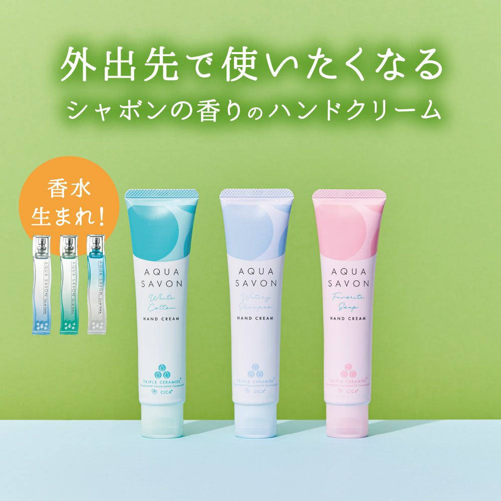 他の画像を見る 心やすらぐ、シャボンな毎日。AQUA SAVON(アクアシャボン) アクア シャボン ハンドクリーム (22a) ウォータリーシャンプーの香り 45g 価格 ¥ 990 税込 お気に入りに登録する