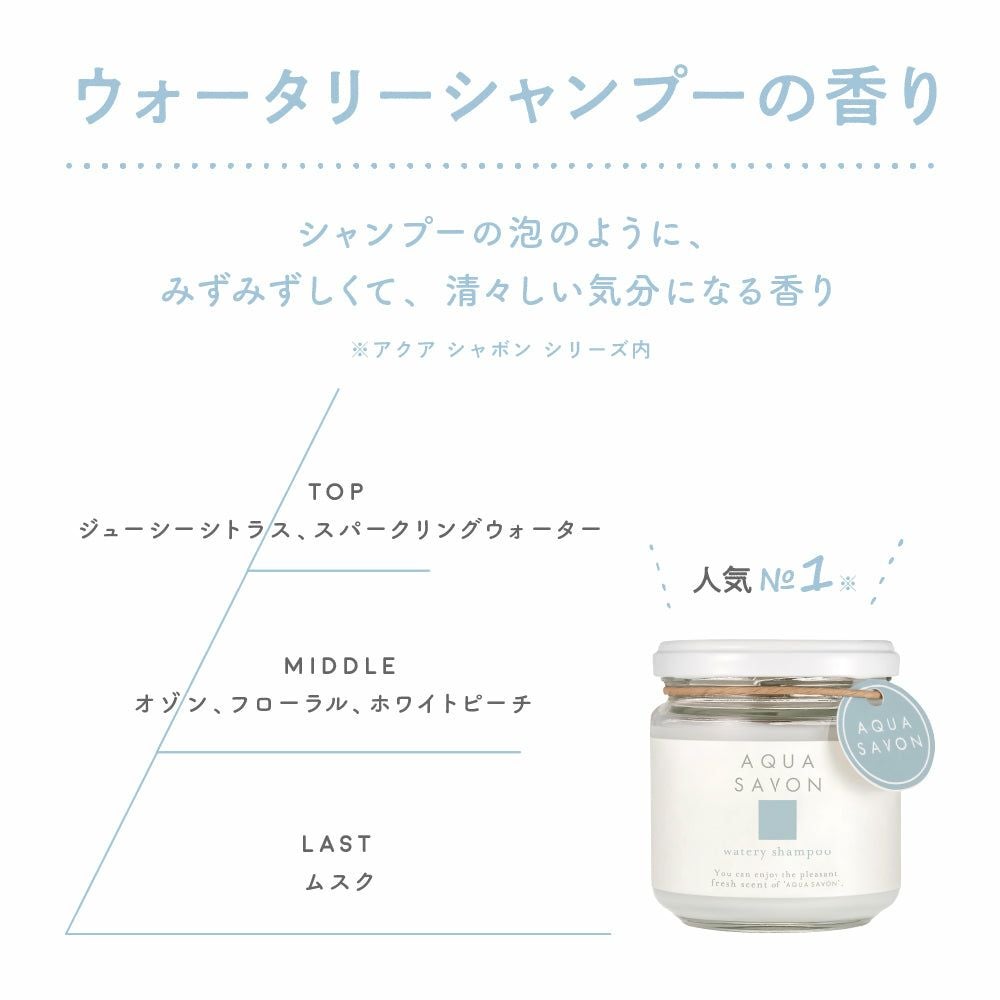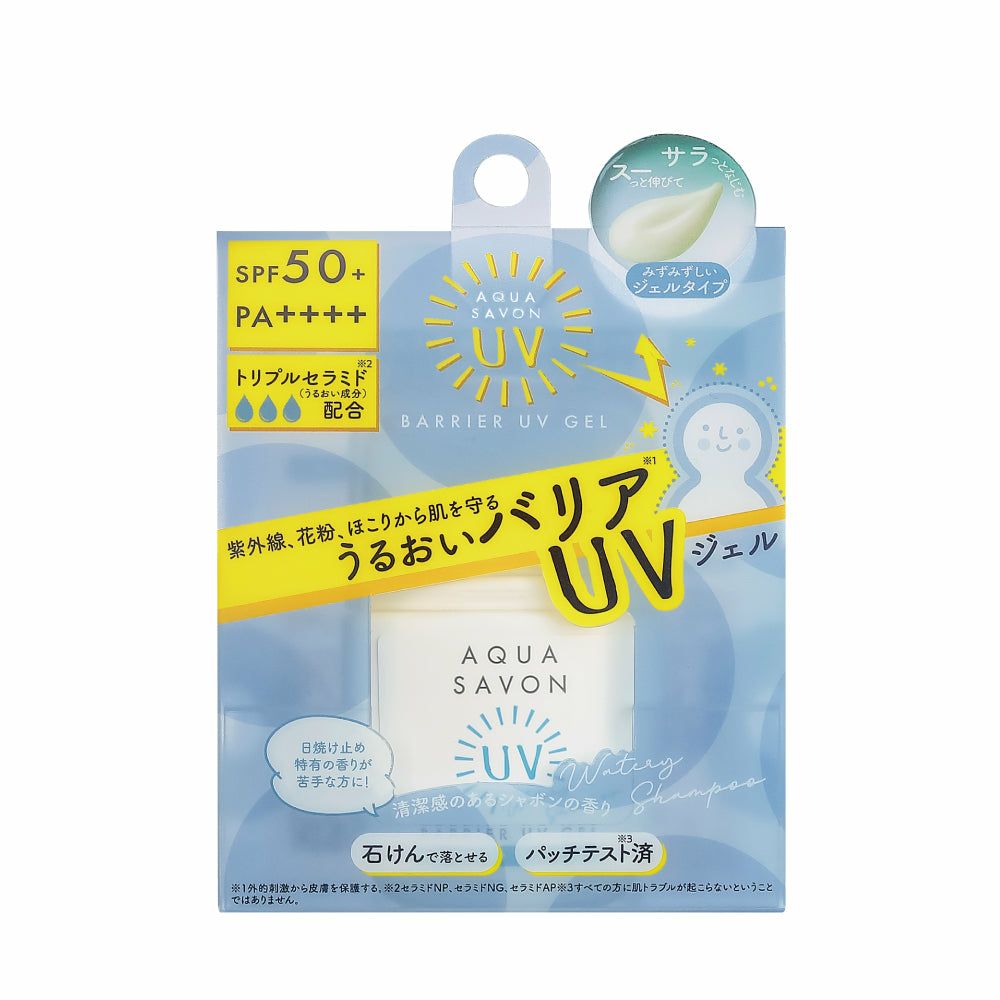 他の画像を見る 心やすらぐ、シャボンな毎日。AQUA SAVON(アクアシャボン) アクア シャボン バリアUVジェル ウォータリーシャンプーの香り (22S) 30g 価格 ¥ 1,100 税込 お気に入りに登録する
