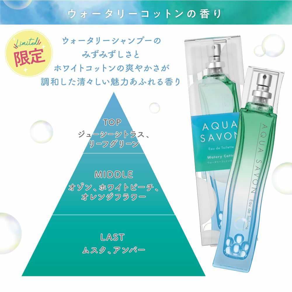 他の画像を見る 心やすらぐ、シャボンな毎日。AQUA SAVON(アクアシャボン) アクア シャボン ウォータリーシャンプーの香り オードトワレ 80mL 価格 ¥ 2,750 税込 お気に入りに登録する