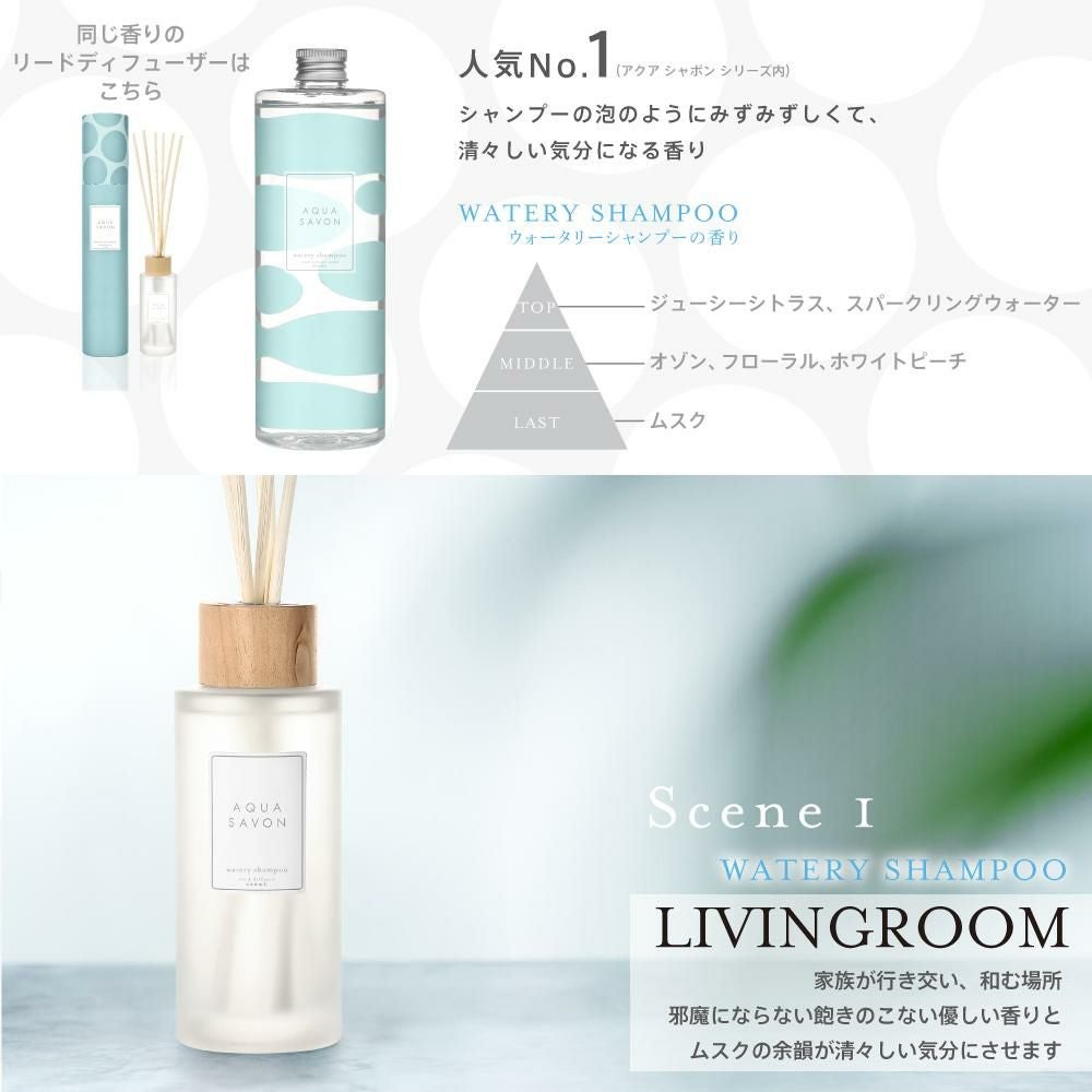 他の画像を見る 心やすらぐ、シャボンな毎日。AQUA SAVON 【オンラインストア限定】アクア シャボン リードディフューザー 詰め替え用 フレグランスオイル ウォータリーシャンプーの香り 500mL 価格 ¥ 5,500 税込 在庫切れ お気に入りに登録する