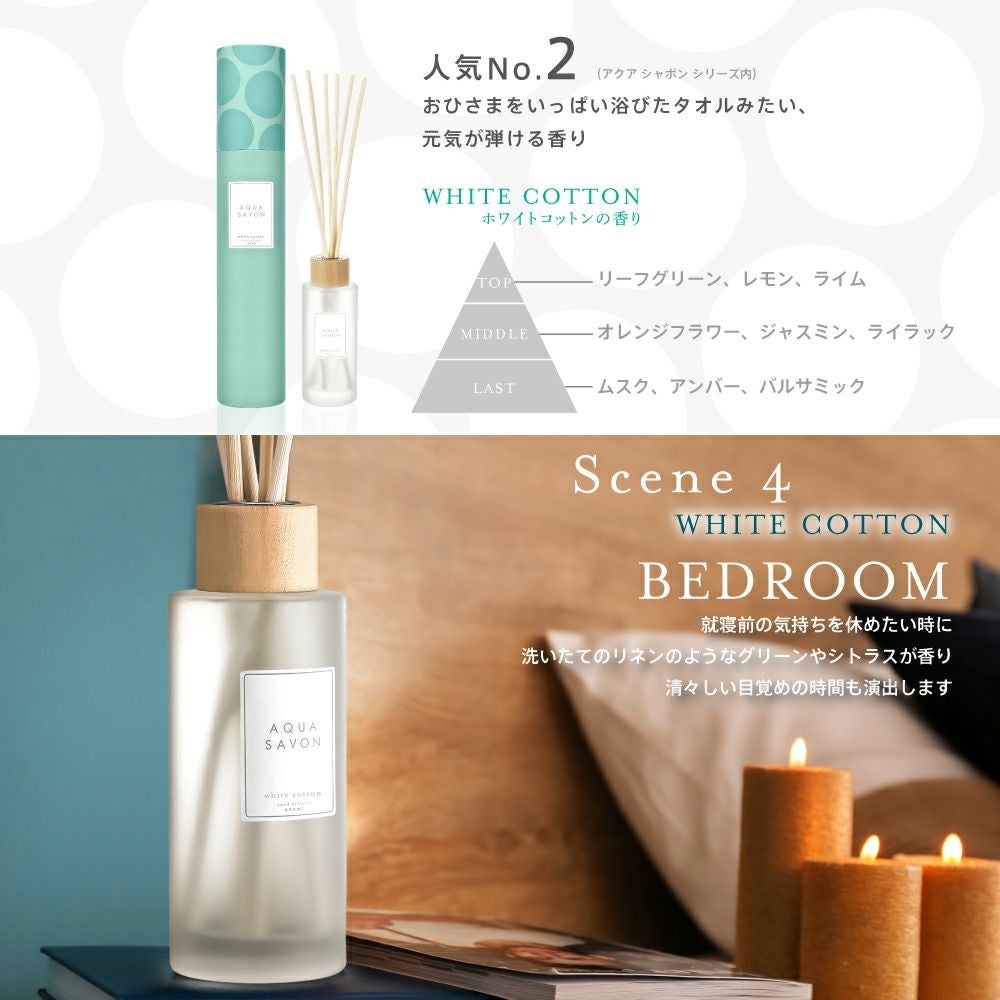 他の画像を見る 心やすらぐ、シャボンな毎日。AQUA SAVON 【オンラインストア限定】アクア シャボン リードディフューザー 詰め替え用 フレグランスオイル ホワイトコットンの香り 500mL 価格 ¥ 5,500 税込 在庫切れ お気に入りに登録する