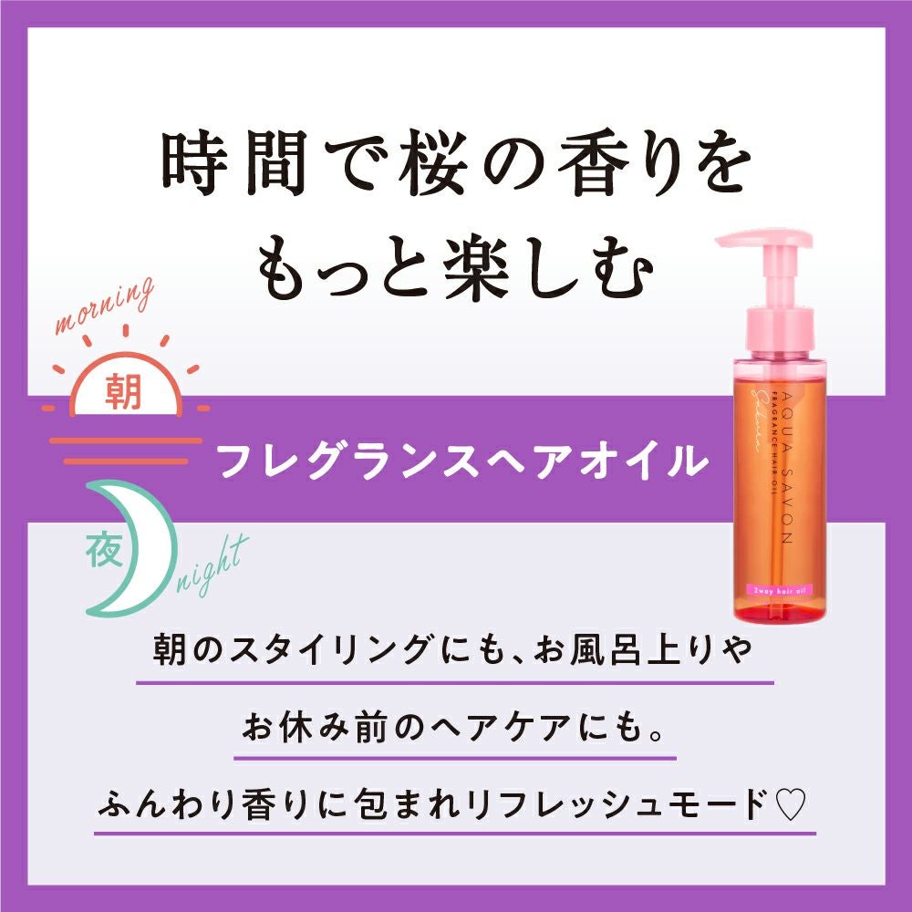 他の画像を見る 心やすらぐ、シャボンな毎日。AQUA SAVON(アクアシャボン) アクア シャボン フレグランスヘアオイル (24S) サクラフローラルの香り 95mL 価格 ¥ 1,650 税込 お気に入りに登録する