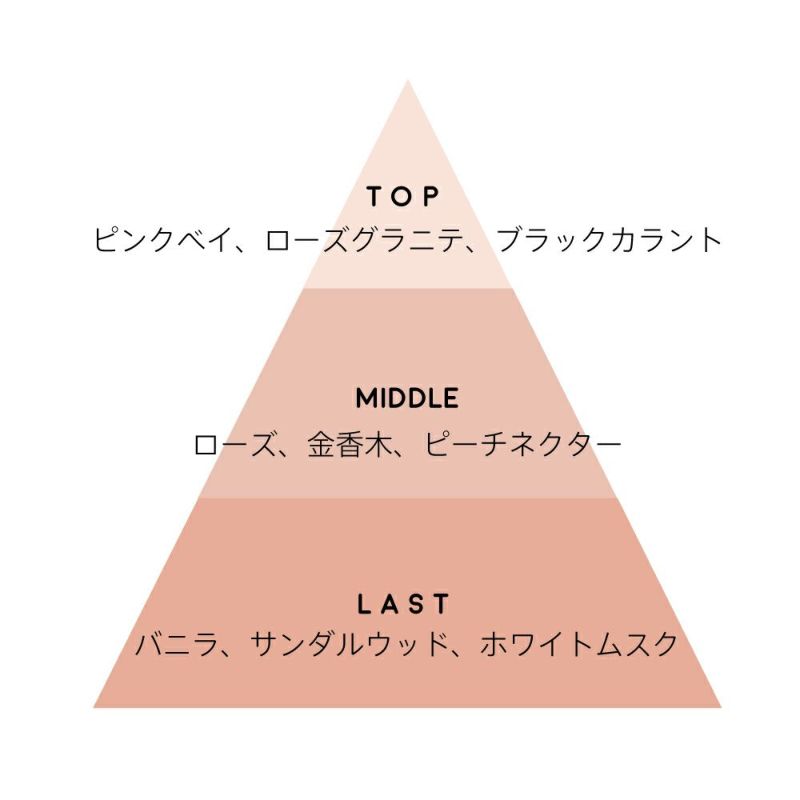 ピンクベイとローズグラニテを組み合わせたロマンティックなノート、ウッディなムスクベースの妖艶な甘さが嗅覚を刺激する官能的なフレグランスです。