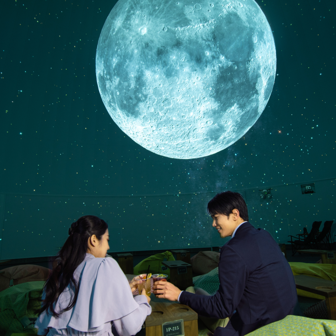 寝転んで星空を楽しめるプレミアムシートが人気のコニカミノルタプラネタリウム。