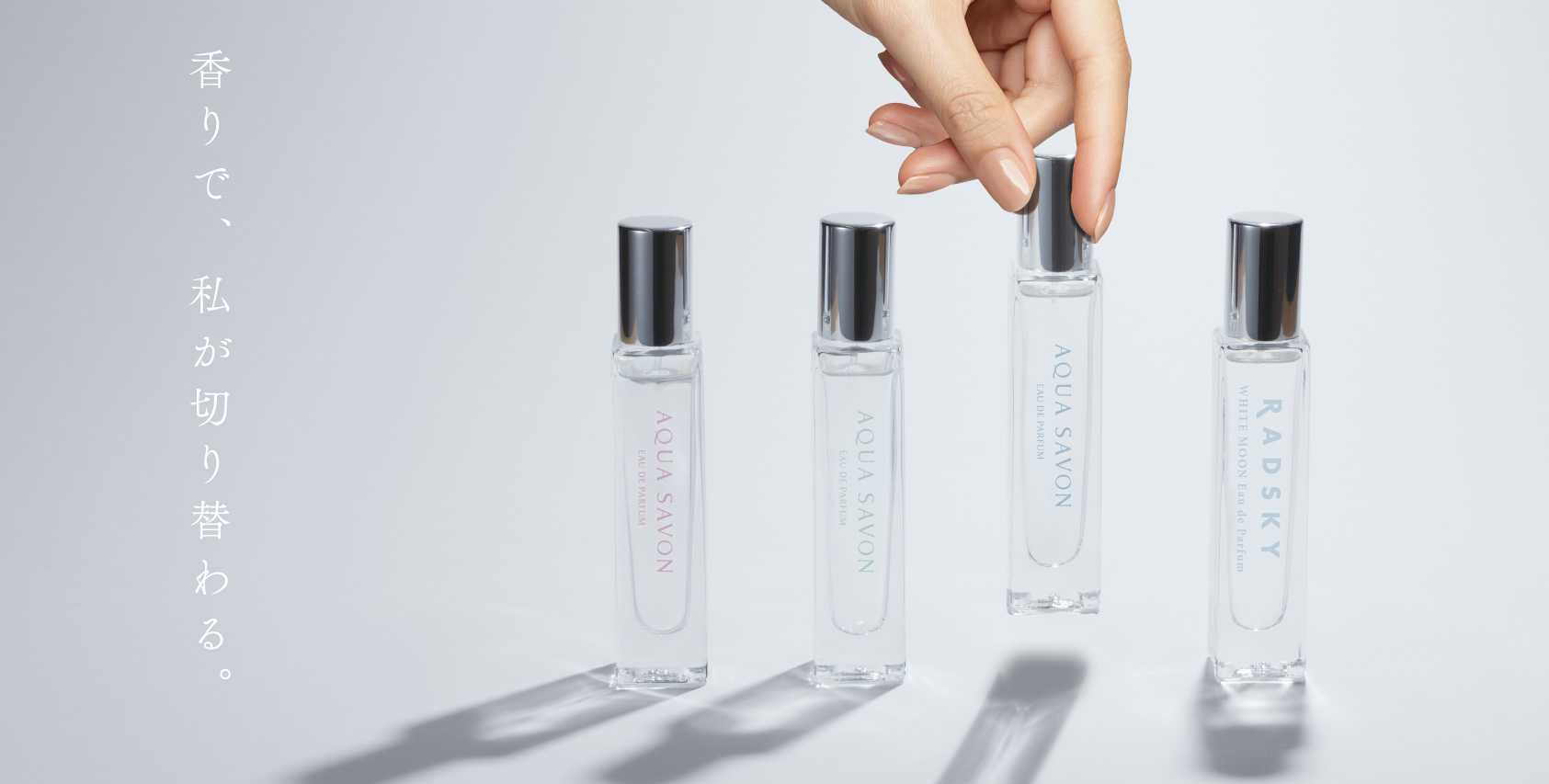 香りで、私が切り替わる。 “気分で選べる”本格フレグランス。 香りを選ぶ楽しさをあなたに。